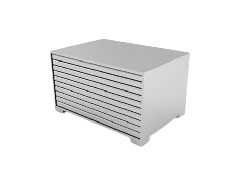 Armaris de calaixos per a la reserva de plànols, teixits i altres objectes.