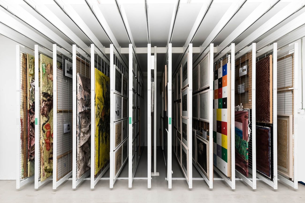 Armaris de calaixos per a la reserva de plànols, teixits i altres objectes.